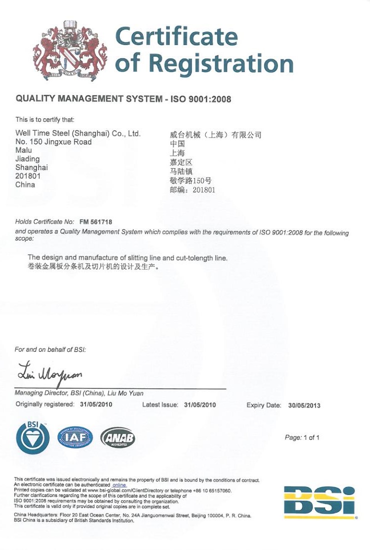 威臺機械(上海)有限公司成立于2002年,位于上海市嘉定區是一家集研發、設計、制造于一體的專業金屬卷片剪切設備制造商。2004年投產后的五年時間內,威臺公司接獲各類剪切生產線訂單超過100套,年產值近億元。